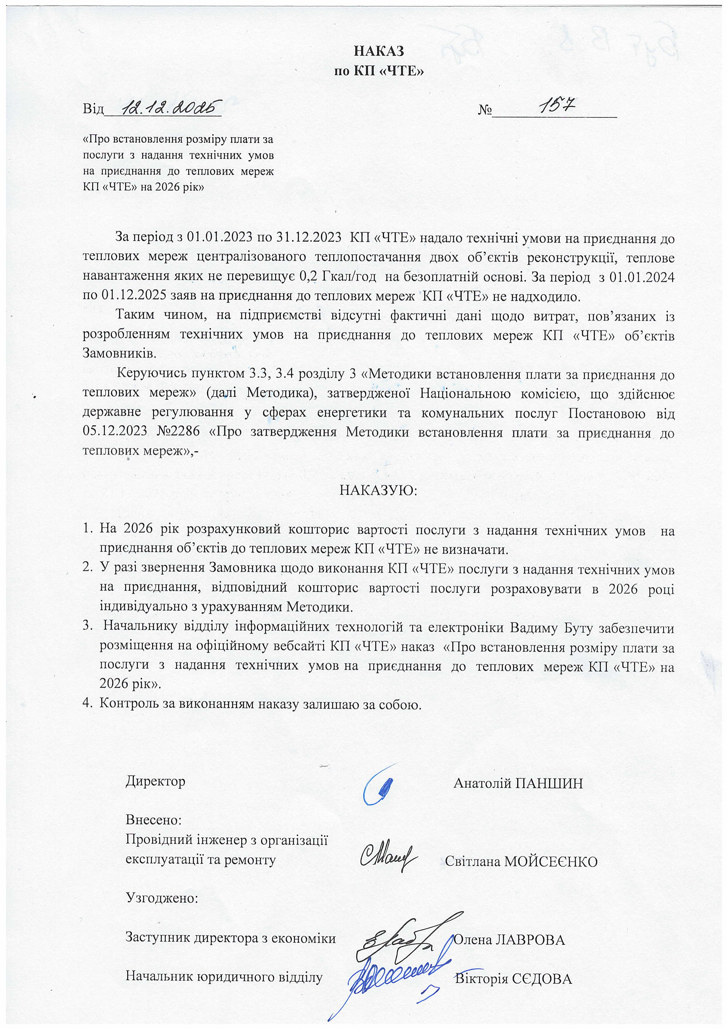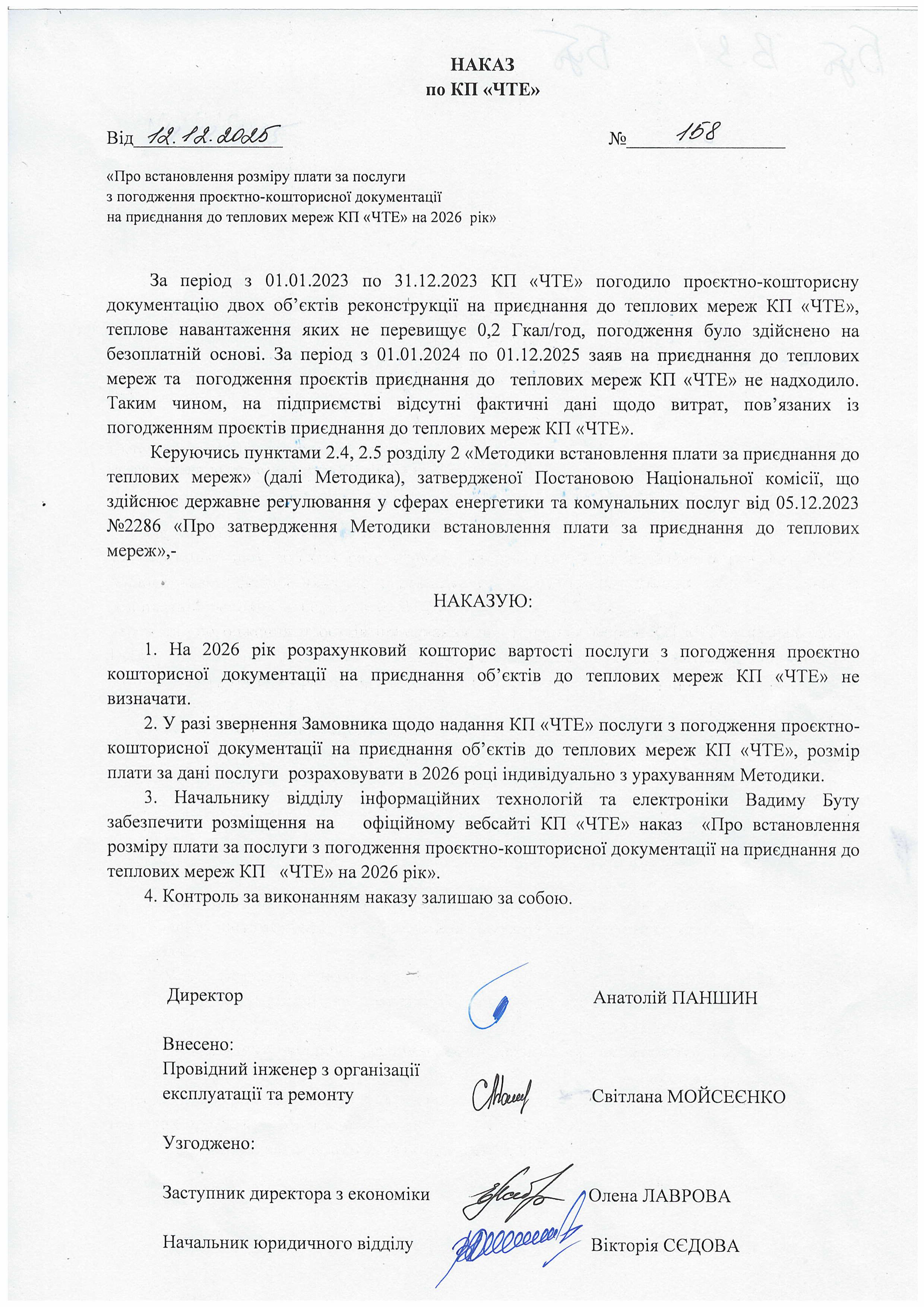 Приєднання до теплових мереж КП "ЧТЕ" здійснюється власником на основі Договору про приєднання до теплових мереж, який укладається між Власником та Замовником
